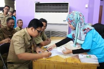 TIGARAKSA - Sebanyak 353 pejabat eselon IV di lingkup Puspemkab Tangerang dites urine, Selasa (8/12/2015). Tes urin ini dilakukan untuk memastikan jika Aparatur Sipil Negara (ASN) bebas dari penyalahgunaan narkoba.