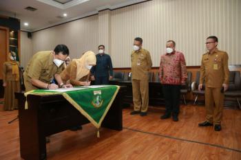 SERANG, (JT) - Penjabat (Pj) Gubernur Banten Al Muktabar melantik 374 pejabat administrator dan pengawas menjadi fungsional di lingkungan Pemerintah Provinsi (Pemprov) Banten, Senin malam (30/5/2022).