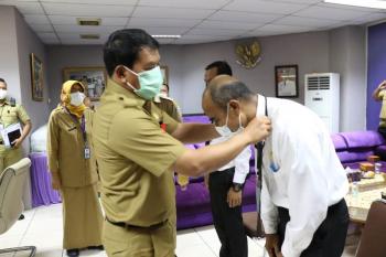 Sekretaris Daerah Kabupaten Tangerang Moch Maesal Rasyid menyematkan tanda peserta pelatihan kompetensi barang milik daerah secara simbolis.