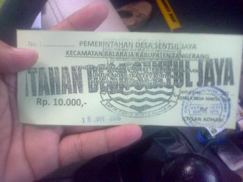 Menurut informasi yang beredar, Kepala Desa nekat memungut uang kepada pengendara mobil angkutan barang yang melintas di jalan raya RSUD Balaraja-Sentiong ini. Padahal Bupati Tangerang melarang adanya pungutan, kecuali bagi kendaraan yang parkir di halaman ruko dan tepi jalan. Tapi tidak untuk Kades Sentul Jaya, dengan berbekal karcis yang distempel dengan logo Pemerintahan Desa, serta tandatangan Kades itu, petugas parkir dengan bebas memungut uang bagi ratusan truk yang melintas setiap harinya.