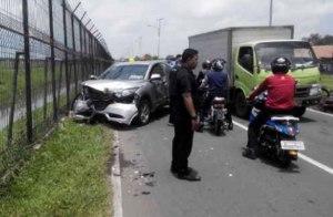 TANGERANG - Kecelakaan beruntun terjadi di jalur Perimeter Utara Bandara Internasional Soekarno-Hatta (Soetta), sisi utara desa Rawa Rengas Rabu, (9/3/2016) siang. Mobil Honda HRV dengan nomor polisi B 1776 SGM, yang dikemudikan Rakha Widyarma putera Gubernur Banaten Rano Karno menabrak taxi dan satu unit sepeda motor Yamaha Vixion yang tengah melintas.