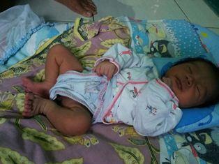 CISOKA - Aneh tapi nyata, itulah yang terjadi pada bayi berumur 11 hari ini. Anak dari pasangan Surin (32) dan Elma (24) warga Kampung Nagreg RT 16/03, Desa Cisoka, Kecamatan Cisoka, Kabupaten Tangerang ini lahir secara normal lahir 8 Agustus 2016. Namun ia memiliki jari sebanyak 25.