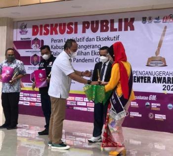 Anggi Muda selaku ketua panitia menjelaskan sebelum acara penganugrahan, panyelenggara menggelar diskusi publik yang bertajuk “Peran Legislatif dan Eksekutif Kabupaten Tangerang Dalam Pemulihan Ekonomi Di Tengah Pandemi Covid-19”.