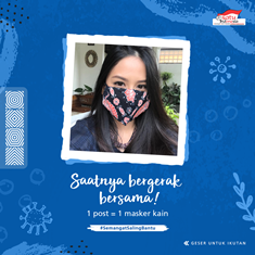 Melalui tagar #SemangatSalingBantu dan #KitaSATUIndonesia, Astra mengajak masyarakat untuk mengunggah satu foto pada akun Instagram feed pribadi dengan menggunakan masker berbahan kain yang akan dikonversikan menjadi satu masker berbahan kain dari hasil komunitas binaan Astra untuk kemudian didonasikan kepada masyarakat sekitar yang membutuhkan.