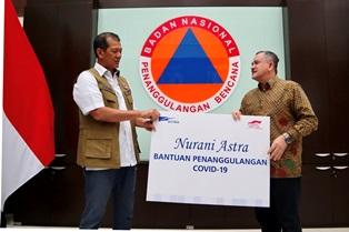JAKARTA, (JT) - Sebagai bagian dari bantuan awal senilai Rp63 miliar untuk mencegah penyebaran COVID-19, Astra dan perusahaan-perusahaan Grup Astra melalui Nurani Astra, Senin (30/3/2020). Bantuan berupa alat pelindung diri, masker, hazmat dan COVID-19 rapid test itu diserahkan kepada Badan Nasional Penanggulangan Bencana (BNPB).