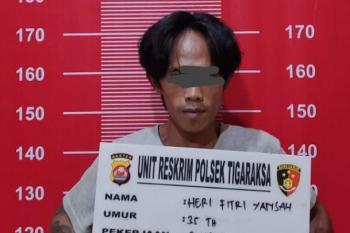 TIGARAKSA, (JT) - Pelaku Kekerasan Dalam Rumah Tangga (KDRT) di Villa Sodong, Desa Sodong, Kecamatan Tigaraksa, Kabupaten Tangerang, ditangkap Unit reskrim Polsek Tigaraksa Polresta Tangerang, Senin (24/1/2022). Setelah menerima laporan dari MRA yang dibacok di bagian bahu sebelah kiri menggunakan senjata tajam Jenis Golok, polisi langsung bergerak menangkap pelaku KDRT.