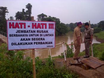 "Kalau tidak segera diperbaiki dampaknya akan besar, karena sebagian besar warga disini membutuhkan jembatan ini," ujar Slamet Budi.