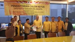 JAKARTA, (JT) - Ketua DPD Partai Golkar Kabupaten Tangerang Zaki Iskandar menyerahkan formulir pendaftaran calon Ketua DPD Golkar Provinsi DKI Jakarta, Jumat (28/02/2020). Zaki tiba di Gedung Golkar DKI sekira pukul 17.00 WIB, didampingi oleh Ketua Harian DPD Golkar Kabupaten Tangerang, H. Muhamad Taufik, Wakil Ketua H.M. Faizal dan Muhamad Amud. Rombongan Zaki Iskandar langsung diterima jajaran pengurus DPD Golkar DKI Jakarta dan panitia Musda diruang pendaftaran.