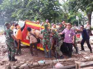 Terlihat, Camat Tigaraksa Mas Yoyon Suryana, Koramil Tigaraksa Kapten Infantri Jauhari dan Kapolsek Tigaraksa Kompol Dedy Irawan, bersama puluhan anggota Satpol PP, TNI dan Polisi serta petugas kebersihan, memberishkan lingkungan di sekitar simpang empat Bugel, Kelurahan Kadu Agung. Beberapa gerobak milik PKL yang masih membandel beroparasi, terpaska diangkut ke mobil kebersihan.
