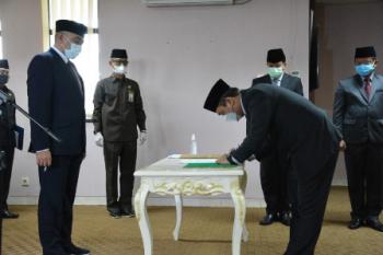 TIGARAKSA, (JT) - Bupati Tangerang A. Zaki melantik dan mengambil sumpah Jabatan Tinggi pratama setingkat Pejabat Eselon II di lingkup Pemkab Tangerang. Pelantikan digelar di Ruang Rapat Cituis Gedung Setda Kabupaten Tangerang, Jumat (15/1/2021).