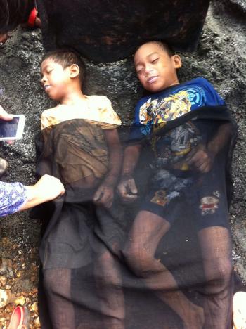 Ia pun penasaran dan dilakukan pengecekan. Setelah dicek ternyata benda yang mirip boneka ini merupakan mayat bocah laki - laki.