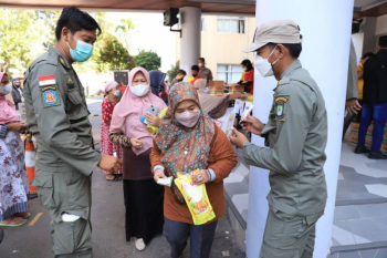 TANGERANG, (JD) - Dinas Perindustrian, Perdagangan, Koperasi, Usaha Kecil dan Menengah (Disperindagkop UKM) membuka Operasi Pasar Minyak Goreng dengan harga 14 ribu perliter, Sabtu (8/1/22). Operasi pasar yang digelar di halaman gedung Cisadane ini untuk merespon arahan Presiden terkait harga pangan terutama minyak goreng yang melambung tinggi.