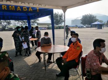 CILEGON, (JT) - Personel Ditpolairud Polda Banten ikuti tactical floor game latihan operasi penanggulangan bencana yang digelar oleh Koarmada I di lapangan Indah Kiat Merak, Kamis (14/10/2021).