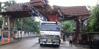 Gapura setinggi lima meter ambruk dan berserakan. Tidak ada korban dalam peristiwa tersebut. Namun kejadian ini bikin jalan macet total.