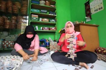 “Karena pandemi COVID-19, kami membatasi jumlah pengolah dan pengrajin agar program ini terus berjalan,” tutur Sylvia saat melakukan pemilahan jenis sampah yang dapat dijual kepada bank sampah KBA Rawajati.