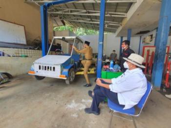 SERANG, (JT) - Gubernur Banten Wahidin Halim (WH) mendukung karya inovasi dan kreativitas siswa SMK di Provinsi Banten. Salah satunya memberi dukungan terhadap inovasi dan kreativitas mobil listrik karya para siswa SMK Negeri 4 Pandeglang dengan memesan satu (1) unit mobil listrik. Hal itu dilakukan Gubernur saat meninjau ruang praktik otomotif SMKN 4 Pandeglang (Senin, 2/3/2021).