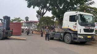 Saat ini,pihak dari pemilik barang tengah berusaha mengevakuasi badan kontainer dengan mendatangkan sejumlah pekerja dan mobil forklift.