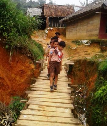 Apalagi melihat kondisi jembatan yang terbuat dari kayu hasil dari swadaya masyarakat, sangat sulitnya akses jalan menuju sekolah.
