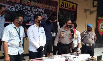 CIKUPA, (JT) - Jajaran Polresta Tangerang membekuk seorang oknum sekuriti salah satu bank swasta berinisial FH. Pria berusia 21 tahun ini diringkus lantaran menjadi tersangka penjambretan handphone (HP) atau telepon genggam di pinggir Jalan Raya Serang KM 10,5, Desa Bitung Jaya, Kecamatan Cikupa, Kabupaten Tangerang, Jumat (17/7/2020) lalu.Kapolres Kota Tangerang Kombes Pol Ade Ary Syam Indradi mengatakan, pelaku yang berprofesi sebagai security di salah satu bank swasta itu melakukan penjambretan bersama rekannya berinisial RS (24) yang saat ini berstatus sebagai daftar pencarian orang (DPO). Pelaku, kata Ade, bersama rekannya menggunakan sepeda motor saat beraksi.