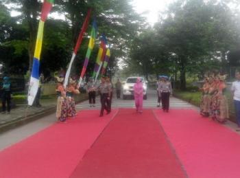 Dalam perpisahan tersebut, Kapolres baru langsung disambut dengan anggota sepanjang jalan masuk Mapolresta, bahkan di meriahkan sebuah tarian polwan-polwan Cantik.