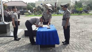 RANGKASBITUNG - Kapolres Lebak AKBP Dani Arianto menjadi inspektur Upacara Serah Terima Jabatan Wakapolres Lebak, Kapolsek Maja dan Kapolsek Cipanas di halaman Mako Polres Lebak, Selasa (23/05/2017).