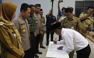 TIGARAKSA, (JT) - Kapolresta Tangerang AKBP H. Ade Ary Syam Indradi mengumpulkan seluruh unsur yang terlibat dalam pemilihan kepala desa (pilkades) dari Kecamatan Tigaraksa dan Kecamatan Jambe di Aula Kantor Kecamatan Tigaraksa, Kabupaten Tangerang, Selasa (12/11/19) malam.