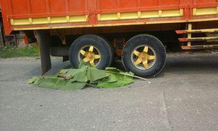 Saat terjatuh tersebut, truk yang dikendarai Harun tengah melaju, sehingga korban terlindas oleh sisi kanan ban belakang truk tersebut. Korban mengalami luka parah pada bagian bahu dan kaki.