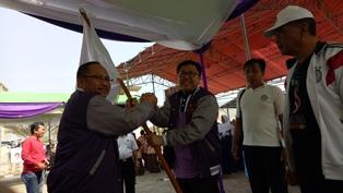 TIGARAKSA - Kirab pekan olahraga kabupaten (PORKAB) Tangerang ke IV di mulai di Kecamatan Kosambi, Rabu (6/9/2017).