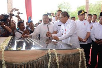 "Pembangunan open camp Ciangir diharapkan dapat menjadi asa yang terbentang bagi pembinaan kemandirian sebagai rumah harapan bagi narapidana, pemerintah, dan masyarakat," ujar Plt Direktur Jenderal Pemasyarakatan, Ma'mun Dalam acara peletakan batu pertama pembangunan Pemukimam Pemasyarakatan Ciangir. (PUT)
