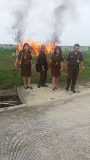 Pantaun di lapangan, aksi pemusnahan jamu ilegal tersebut di saksiakan oleh petinggi Polri dan petinggi Kejagung, di lapangan terbuka, tak jauh dari lokasi penggerebakan di Blok B1 dan Blok G7. Dengan menggunakan bahan bakar bensin dan ban bekas, puluhan butir jamu ilegal tersebut ludes dilalap sijago merah.