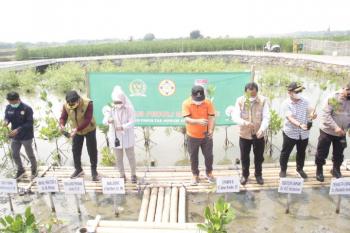 MAUK, (JT) - Kepala Dinas Perikanan Kabupaten Tangerang ikut serta menanam 1.000 mangrove bersama Universitas Pamulang, dalam Pengabdian Kepada Masyarakat (PKM). Penanaman angrove digelar di Kampung Urban Akuakultur Ketapang, Kecamatan Mauk, Kabupaten Tangerang, Minggu (6/6/2021).