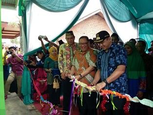 LEGOK - Bupati Tangerang A. Zaki Iskandar bersama Menteri Koperasi dan UMKM Agung Gede Ngurah Puspayoga meresmikan pembangunan rumah layak huni gratis, Minggu (18/09/2016). Pembangunan rumah ini di inisiasi oleh Koperasi Syariah Benteng Mikro Indonesia yang dilaksanakan di RT 03/04 Desa Bojong Kamal, Kecamatan Legok, Kabupaten Tangerang.
