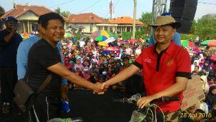 Hadiah pertama Sepeda gunung di menangkan oleh Asep warga Kampung Gabral, Desa Ranjeng yang diserahkan langusng oleh Lurah Cecep sebagai kepala Desa Ranjeng.