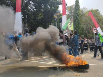 Massa aksi sempat ingin masuk ke gedung DPRD dengan terus merangsek. Namun, aparat kepolisian menghadang aksi para mahasiswa ini dengan portal besi. Sehingga aksi saling dorong tak terelakkan. Aksi semakin memanas ketika massa membakar ban bekas dan coba dipadamkan oleh aparat.