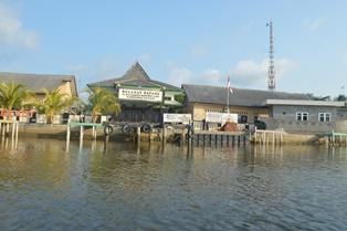 Setelah sekitar satu jam lebih menyusuri segara anakan, penulis tiba di sebuah perkampungan di pinggir laut. Ya itulah wilayah kampung laut. Setelah menyandarkan perahu di pinggiran dermaga kecil, kita sudah bisa langsung melihat kantor Kecamatan Kampung Laut dikelilingi beberapa rumah warga dengan jarak yang tidak terlalu dekat.