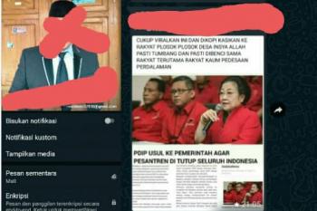 TIGARAKSA, (JT) - Pemerhati Industri Kecil dan Menengah (IKM), Widi Hatmoko, menyayangkan ada oknum calon kepala desa (Kades) yang menyebarkan gambar tangkapan layar soal berita "hoax" tentang salah satu parpol dengan gambar Ketua Umum PDI Perjuangan Hj. Megawati Soekarno Putri dan Sekjen PDI Perjuangan Hasto Kristiyanto.