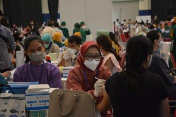 PAGEDANGAN, (JT) - Pemerintah Kabupaten Tangerang bekerjasama dengan Dinas Kesehatan Provinsi Banten dan Astra Grup, gelar vaksinasi massal bagi lansia dan tenaga kependidikan di Kabupaten Tangerang. Sebanyak 10 ribu dosis vaksin yang disiapkan, saat digelar vaksinasi di ICE BSD, Kecamatan Pagedangan, Kabupaten Tangerang, Selasa (8/6/2021).