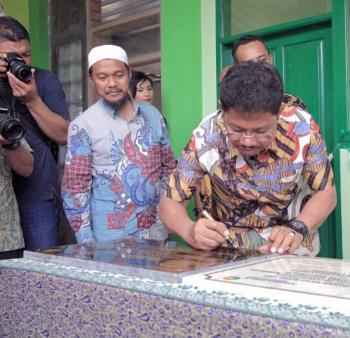 BENDA - Wakil Wali Kota Tangerang, Sachrudin, menghadiri acara peresmian dan penyerahan bantuan Program Monumental Bina Lingkungan PT Angkasa Pura II (Persero) Bandara Soekarno Hatta (BSH) yang dipusatkan di Yayasan Pendidikan Islam (YPI) At-Taqwa, Kelurahan Belendung, Kecamatan Benda, Kota Tangerang.