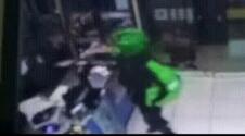 Perampokan yang sempat terekam kamera CCTV tersebut, memperlihatkan salah satu pelaku mengenakan jaket dan helm ojek online dan mengeluarkan sebilah golok dari balik jaketnya.
