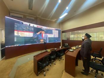 “Sesuai dengan pedoman penyelanggaraan yang diterbitkan oleh Kementerian Pendidikan dan Kebudayaan Republik Indonesia, pelaksanaanya kami hanya mengikuti upacara yang dilaksanakan di pusat secara virtual”, jelasnya.