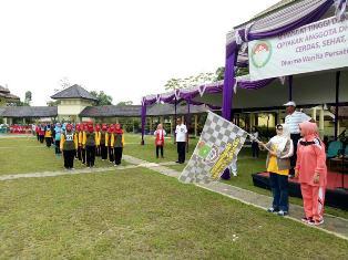 Dilanjutkan pelepasan para peserta lomba gerak jalan oleh Sekretaris Daerah Iskandar Mirsad didampingi Hj. Etis Lautina Iskandar Mirsad Ketua Dharma Wanita Persatuan Kabupaten Tangerang dan Hj. Lili Hermansyah Wakil Ketua I TP PKK Kabupaten Tangerang. (hms)