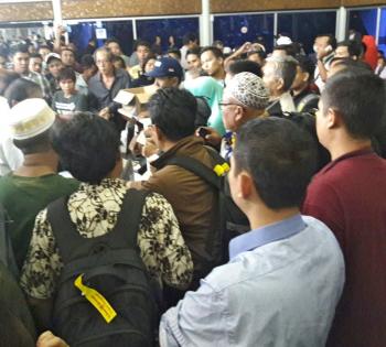 TANGERANG - Penumpukan penumpang terjadi pada Jumat (3/2/2017) di Bandara Soekarno Hatta, Tangerang. Mereka yang merupakan penumpang maskapai Lion Air ini tampak ribut.