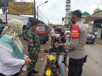 "Kegiatannya membagikan masker kemudian mengimbau masyarakat agar melaksanakan 5M yaitu menggunakan masker, menjaga jarak, mencuci tangan, menghindari kerumunan, dan mengurangi mobilitas atau mengurangi aktivitas di luar rumah," terangnya.