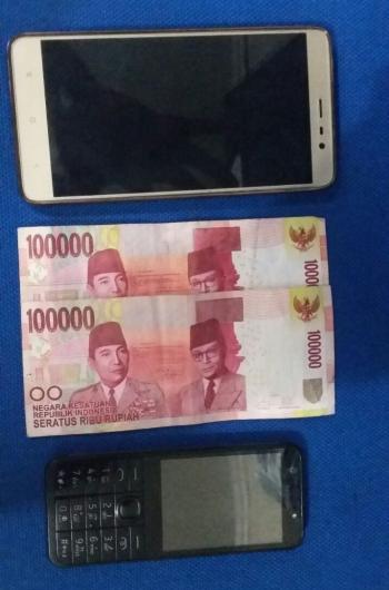 Sejumlah barang bukti diamankan aparat di lokasi. Di antaranya uang tunai Rp. 200.000, dan dua unit handphone milik pelaku.