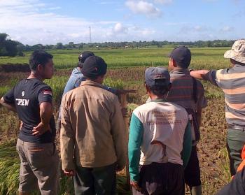 Pasalnya, padi yang ditanam sudah berumur 2 bulan. Salah satu Petani penggarap Sukandi mendesak kepada pemborong agar dia beserta petani lainnya diberikan ganti rugi.