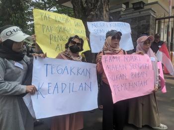 Puluhan Pedagang Pasar Kuta Bumi Unjuk Rasa di Depan Pengadilan Tangerang