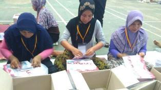 "Hasil surat suara yang sudah di ikat akan disortir ulang, khawatir nanti tidak sesuai jumlahnya," tambahnya. Nana menerangkan bahwa setiap ikatan berisi 50 lembar surat suara. Selanjutnya, surat suara akan di masukan kedalam boks dengan jumlah tiap boks nya 2.000 lembar.