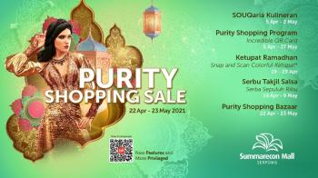 KELAPA DUA, (JT) - Guna memeriahkan momen bulan suci Ramadhan 1442 H, rangkaian even terbaik dikemas oleh Summarecon Mall Serpong (SMS) dalam tajuk "Purity Shopping Sale" sejak 22 April hingga 23 Mei 2021. Belanja kebutuhan sandang dan pangan menjadi suatu kebiasaan yang tidak terlewatkan di bulan Ramadhan. Oleh karena itu, SMS juga menghadirkan beragam program belanja untuk SMSLovers.