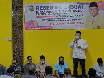 RAJEG, (JT) - Kegiatan reses anggota DPRD Kabupaten Tangerang dari Dapil IV, Muhamad Amud, diwarnai beragam usulan dari masyarakat, Kamis (1/9/2021). Selain usulan pembangunan yang biasa disampaikan oleh warga, pada reses kedua ini, masyarakat juga mengusulkan agar difasilitasi vaksin. Saat ini kesadaran masyarakat untuk divaksin sudah cukup baik.
