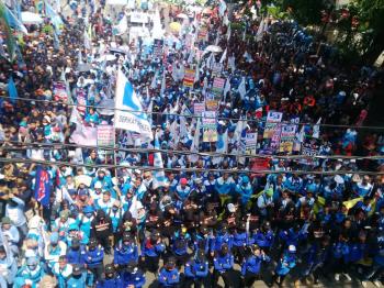 "May Day tahun ini menjadi berasa kental seperti berhadapan dengan rezim anti wong cilik, karena aksi massa sudah dihalau dengan kawat berduri yang jaraknya masih di luar Ring 1 istana, MAy day tahun ini serasa berhadapan dengan rezim orde baru kerena semua nya sudah di sterilkan dengan cara tidak lazim," pungkas agus. (MAN)